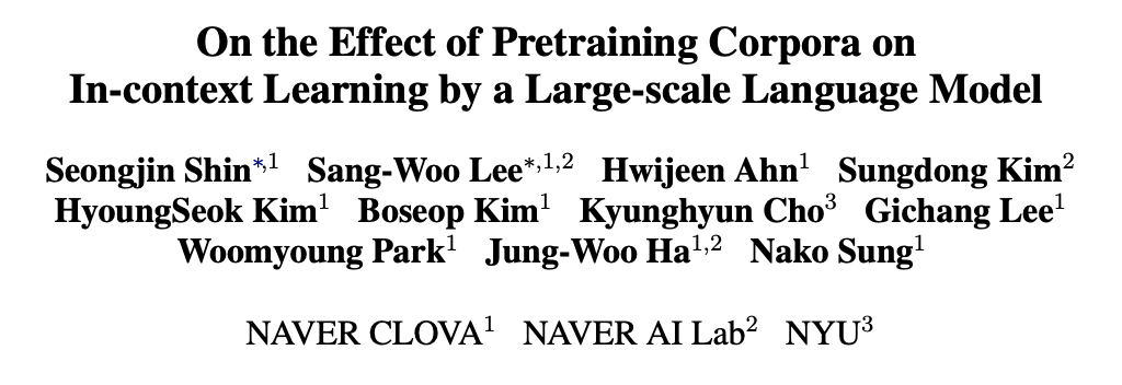 - 코퍼스(말뭉치) 변화에 따른 인-컨텍스트 학습 성능 차이가 밝혀지지 않음